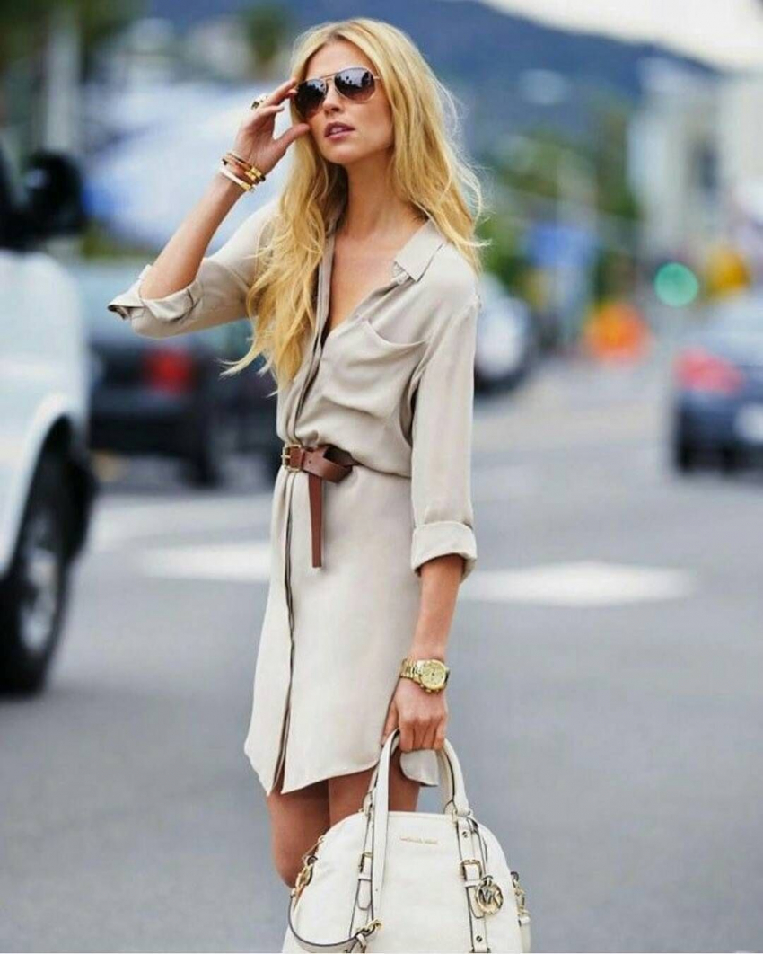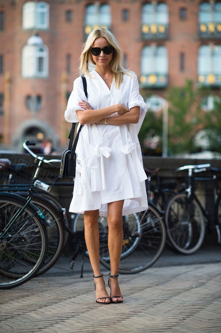 Сочетать платье-рубашку можно с любыми аксессуарами. Из сумок часто используют клатчи, кожаные рюкзаки и объемные шопперы. Среди обуви стилисты советуют выбирать туфли на каблуке, мюли, босоножки, кеды.