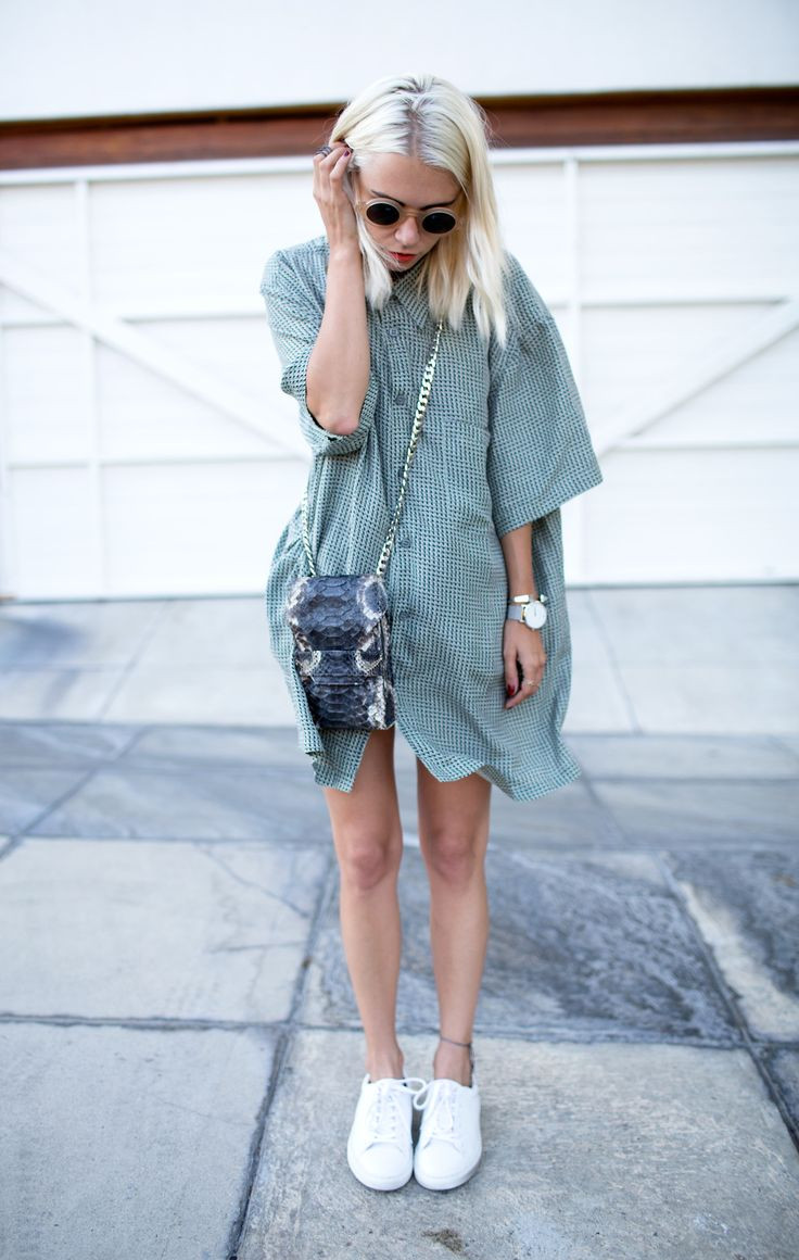 Длина платья-рубашки при носке нараспашку может быть разной. Однако стилисты не советуют надевать варианты ниже колена. Идеальная длина — до середины бедра. Такой предмет гардероба близок к спортивному стилю, поэтому стоит рассмотреть сочетания с кедами и кроссовками.