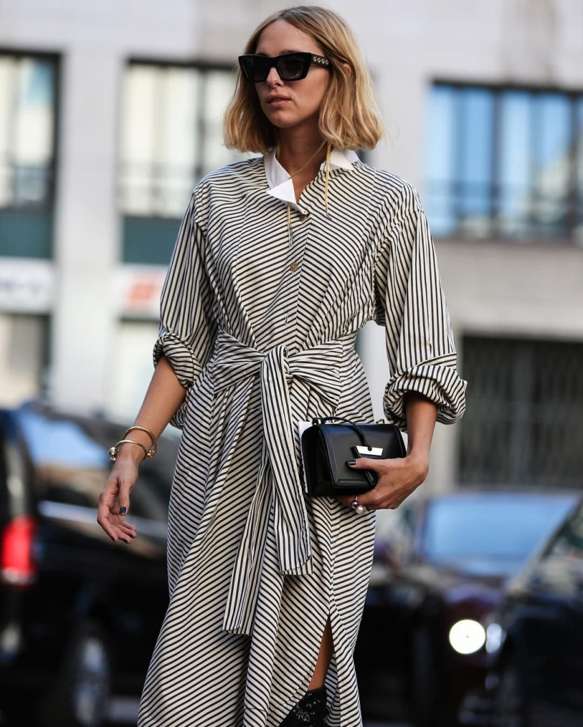 Идеальную для этого платья длину можно посмотреть на фото. В 2022 году оверсайз останется в трендах сезона, поэтому отказываться от него раньше времени не стоит. Однако необходимо следить, с чем сочетается такая рубашка в образе.