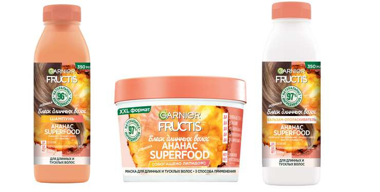 Новая линия «Блеск для длинных волос» Fructis Superfood Ананас от GARNIER