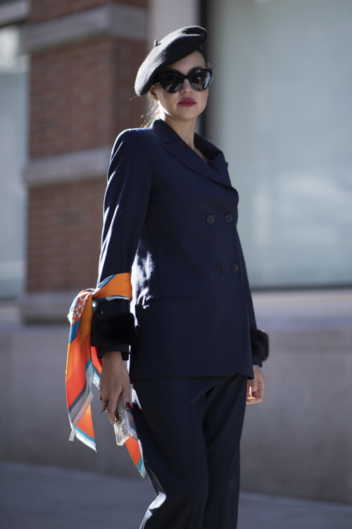 Звездное возвращение этому головному убору обеспечили streetstyle-звезды во всех уголках мира: от Копенгагена до Нью-Йорка. Самыми эффектными стали красочные или принтованные варианты. Модницы сочетали их с брючными костюмами, макси-пальто, мини-юбками и джинсами-клеш.