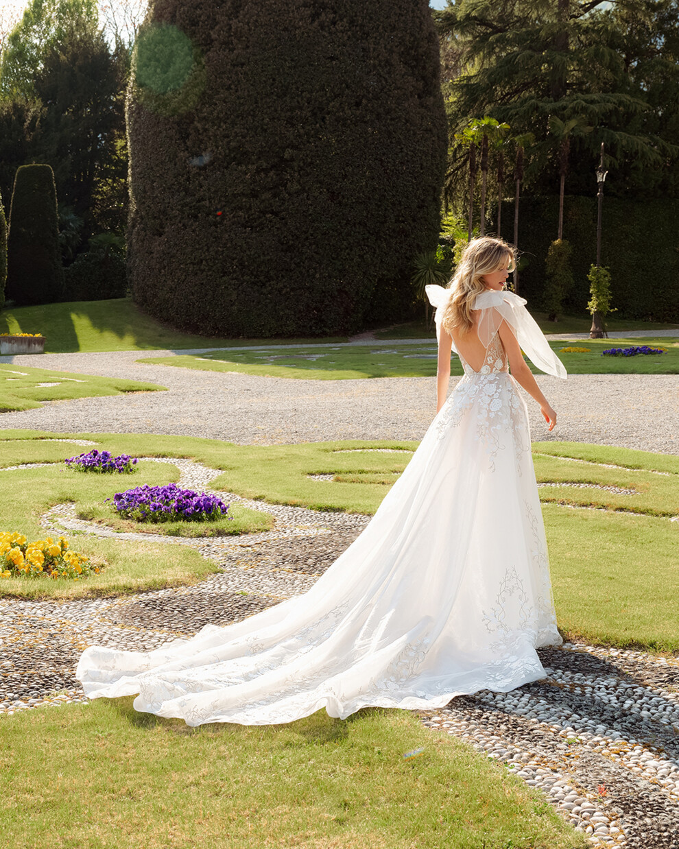 MarkarianТенденция на романтичный декор в виде бантов не обошла стороной и коллекцию ливанского дизайнера Зухаира Мурада, который славится своими "королевскими" подвенечными платьями. В этом сезоне весна-лето 2022 наряд с мерцающими элементами обнимает крупный белоснежный бант на талии. Примерив один раз это платье, не захочется снимать его никогда. Эффектней всего крупные банты смотрятся в паре со свадебными платьями лаконичного кроя, тогда все внимание приковано к этому изящному декору. Так, Amsale украсили атласное белое платье лишь одной акцентной деталью на спине, в то время как Halfpenny London поместили крупный бант в область декольте ( кстати, этот хитрый стилистический прием особенно подойдет для девушек с маленькой грудью).