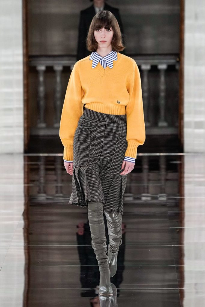 На этот раз дизайнер объединила легкое весеннее пальто, украшенное элегантными складками внизу, с платьем миди очень похожего цвета. Для этого она подобрала нежные бежевые босоножки на высоком каблуке. Укладка со вкусом создает впечатление замкнутого целого и привлекает взгляды поклонников и фотографов. Это знак того, что радостный желтый цвет будет царить в моде круглый год!