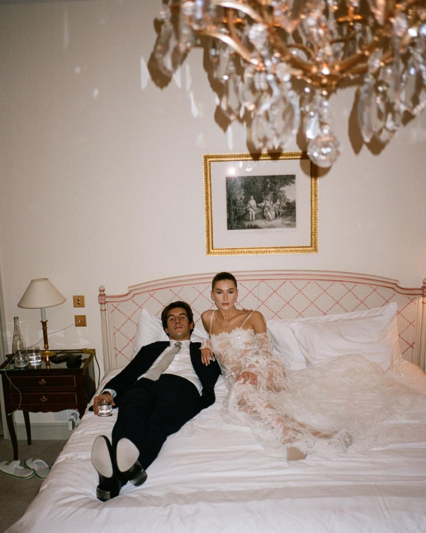 11 декабря список самых красивых свадеб уходящего 2021 года пополнила свадьба французской fashion-инфлюенсера Камиль Шарьер и продюсера Франсуа Ларпена. После двух лет отношений пара решила официально зарегистрировать свой брак в Париже. Первый свадебный образ Камиль состоял из полупрозрачных блузы и миди-юбки, расшитых сотнями мерцающих пайеток, а второй наряд оказался не менее провокационным – "голое" платье на тонких бретелях, выполненное из ажурного кружева.