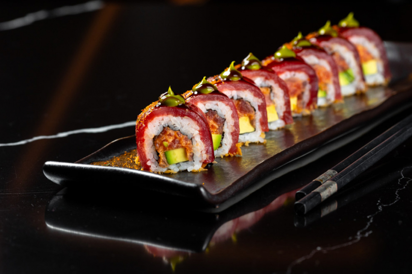 Татаки лосось с горчичным соусом с сальсой из халапеньо и огурцаРолл со спайси тунцом, авокадо и луковым майонезом познакомит любителей японских роллов с экспериментальной стороной японской кухни.