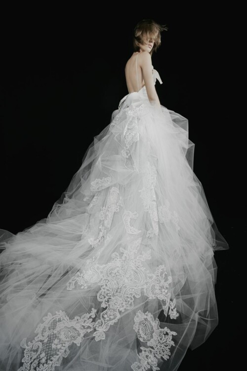 В дебютную коллекцию Vera Wang Haute вошло всего 10 образов, каждый из которых воплощает в себе опыт, видение и креативность, которые Вера приобрела за более чем тридцатилетнюю карьеру в свадебной индустрии. Таким образом, коллекция Haute представляет собой исследование главных приемов, которые вывели Вонг в статус королевы свадебной моды. Каждое платье, состоящее из различных силуэтов, объемов, размеров и пропорций, является воплощением традиций. От романтизма объемного струящегося кружева до яркой архитектурной конструкции и роскошного мини-платья с черными рукавами-баллонами - Haute представляет собой коллекцию эффектных изделий высокого дизайна, сшитых по индивидуальному заказу в собственных мастерских дизайнера. Все образы из коллекции смотрите в нашей галерее.