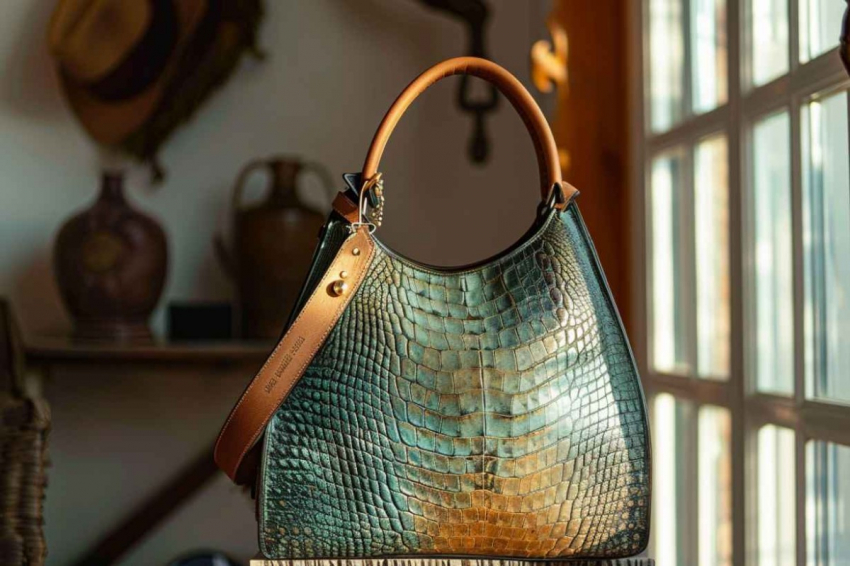 - Сумку из кожи, имитирующей фактуру рептилии, можно включать как в деловые, так и в повседневные кэжуал луки. Аксессуар приобретет дополнительную яркость за счет лакированной структуры материала. В летний сезон особой популярностью пользуются бежевые или пастельные модели.
