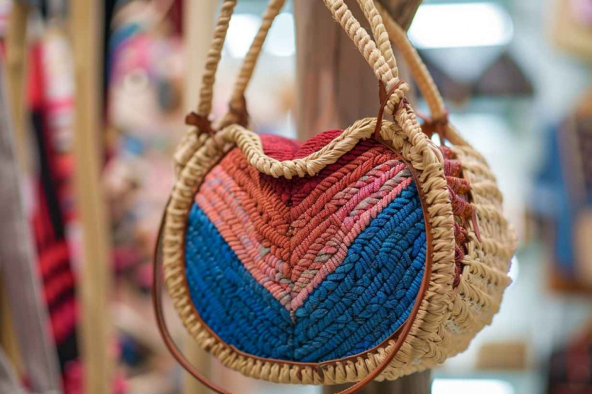 - Плетеные модели в стиле хенд-мейд – неотъемлемый атрибут пляжного образа, который в этом сезоне предлагается включить и в повседневные городские луки. Аксессуар может содержать яркую аппликацию, придающую сходство со стилем бохо.