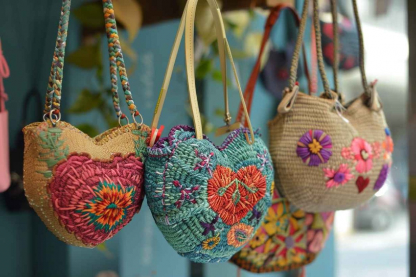 - Любительницы смелых экспериментов по достоинству оценят аксессуары необычной формы: шара, сердца, треугольника. Изделию может придаваться оригинальная фактура за счет расшивки бисером, бусинами, дополнения интересными аппликациями.