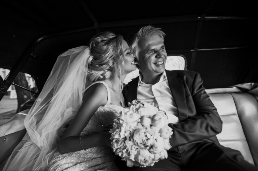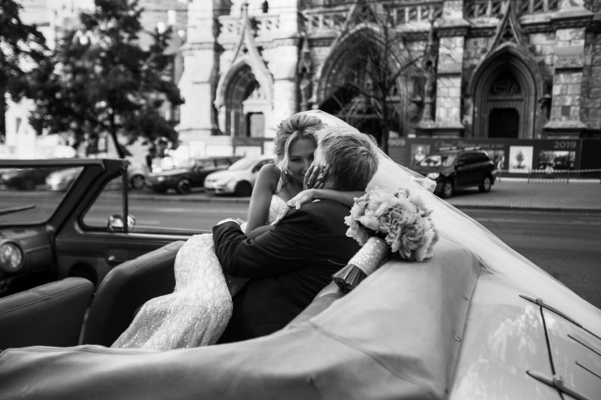 Свадьбу пара решила провести спустя полгода после помолвки, чтобы успеть как следует подготовиться. "Свадьба у нас была в Вене, в старинном замке, а я была настоящей принцессой - в бриллиантовой диадеме и в свадебном платье от австрийского дизайнера с украинскими корнями. Было много гостей из Швейцарии и Австрии и, конечно же, мои друзья и родственники из Украины. Больше всего мне запомнились эмоции, которые я испытывала на свадьбе - безграничное счастье и любовь своего мужа и благодарность судьбе за эту встречу". В качестве свадебного наряда, невеста надела белоснежное платье с 3-х метровым шлейфом, расшитое жемчугом и нежной ручной вышивкой. "Платье весило более 10 килограмм и мне его помогали надевать 4 человека", - вспоминает Юлия. Подвенечный образ невеста обыграла белыми туфлями Prada и украшениями Tiffany & Co. из коллекции Tiffany Victoria.