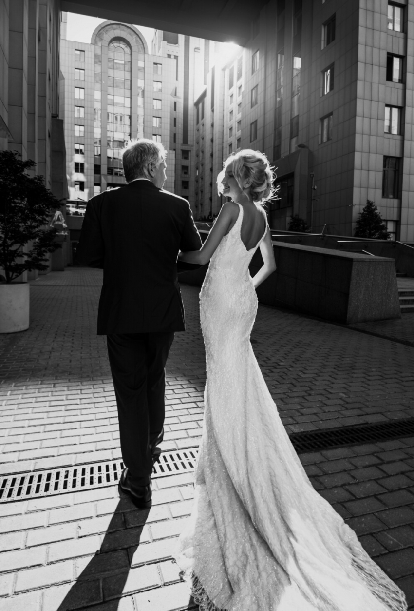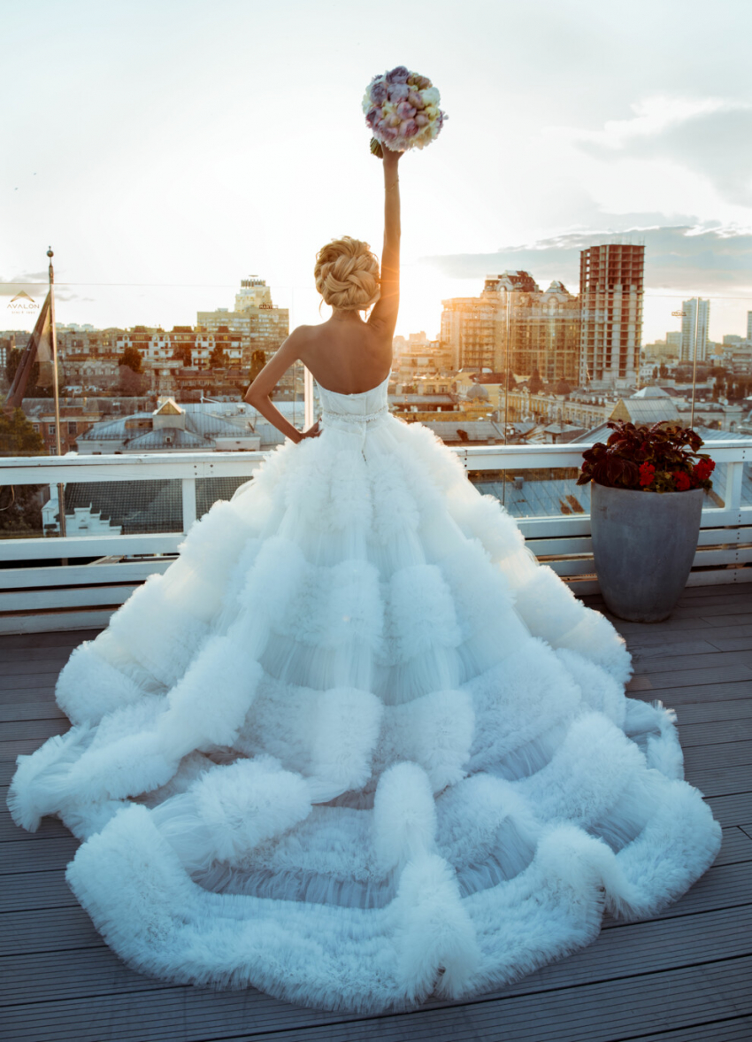Платье ADAMARIS Bridal весна-лето 2021"У нас был очень красивый роман, Сергей ухаживал как настоящий джентельмен, и продолжает это делать до сих пор, будто мы встретились только вчера. На протяжении года мы жили в разных странах, и наши свидания всегда были такими эмоциональными особенными, как в первый раз. Я признаюсь, что и сейчас мы продолжаем организовывать друг другу свидания-сюрпризы, и в нашей спальне каждый день стоит свежий букет моих любимых пионов, подаренных моим мужем", - продолжила Юлия. Любовная история пары набирала оборотов с каждым днем и вот настал тот самый день, когда Сергей сделал предложение. "Мы летели на бизнес-джете в Швейцарию, и когда мы поднялись на большую высоту - он стал на одно колено и достал заветную коробочку Tiffany & Co. Я почувствовала, что моя жизнь превращается в сказку", - вспоминает Юлия.