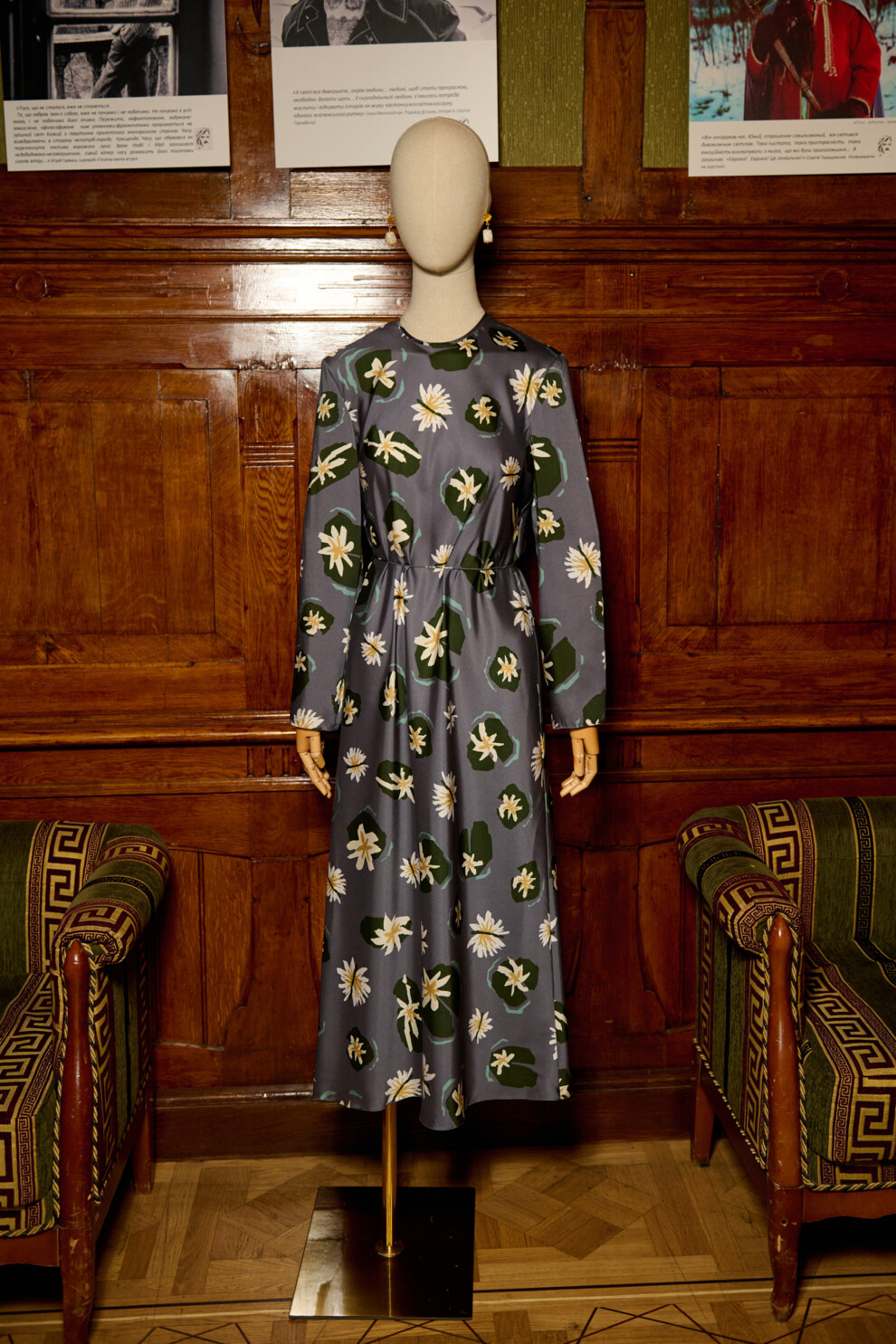 “Совершенство форм природы, спокойствие и умиротворение мы хотели передать в коллекции: в крое, драпировках, оттенках. Земляной коричневый, бежево-серый, глубокий синий и травянистый зеленый с акцентной фуксией - все цвета как будто вышли из хвойного леса, в глуши которого спряталось озеро с кувшинками и цветочными полянами вокруг. Силуэты — прямые на контрасте с приталенными, подчеркивающие женственность и женское начало,” - говорит Анастасия Рябоконь.