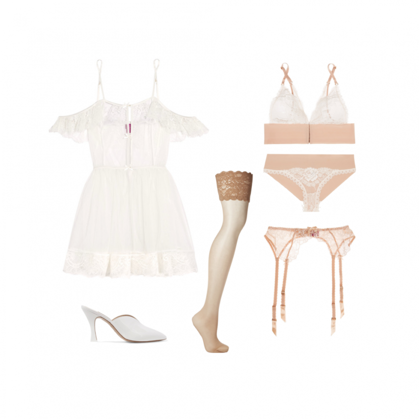 Образ №1Платье-комбинация Agent Provocateur; чулки Wolford; пояс для чулок L'Agent By Agent Provocateur; бюстгальтер, трусы, все - Stella McCartney; сандалии AtticoОбраз №2