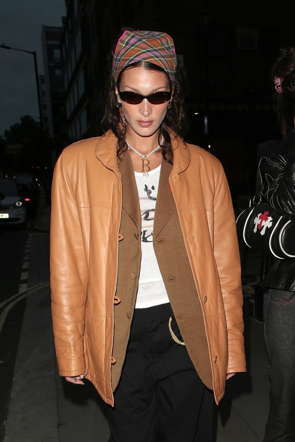 Белла ХадидСоциальные сети способствовали распространению платков, ведь модницы повсеместно демонстрируют этот предмет во всей его красе. Вместо того, чтобы придерживаться строгого и правильного подхода Одри Хепберн, владелицы бандан показывают свой собственный взгляд на стиль 2000-х, сочетая шелковые платки с культовыми предметами той эпохи.