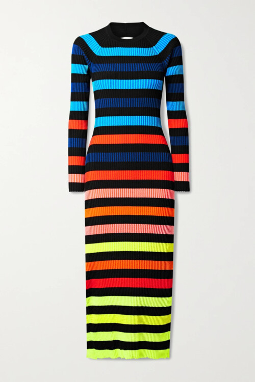 Ничто так не выражает уверенность, как принт в эффектные полосы. Трикотажные платья от Wales Bonner сделаны из плотной, облегающей ткани, подходящей как для дневного, так и для вечернего образа, а Christopher Jhon Rogers призывает дополнить осенний гардероб привлекательными полосатыми макси.