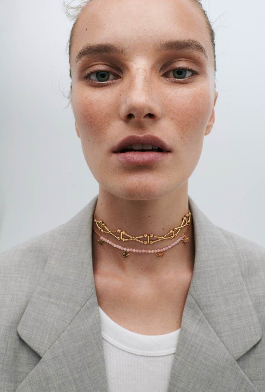 Так, ювелирная коллекция из желтого золота дополнена вспышками цвета: розового опала и бирюзы. В будущем "Незалежна" будет пополняться другими оттенками драгоценных камней. Одни из ключевых украшений в коллекции – кольцо и чокер, дизайн которых построен на мотиве перекрестных троп, колье из тонких цепочек, а также цветочные орнаментальные и минималистичные серьги и кафы. Причем, их можно будет купить в любой комплектации – как парой, так и индивидуально. Есть в коллекции и специалитеты Gunia Project – шелковый платок с цветочным орнаментом и свеча с новым ароматом.
