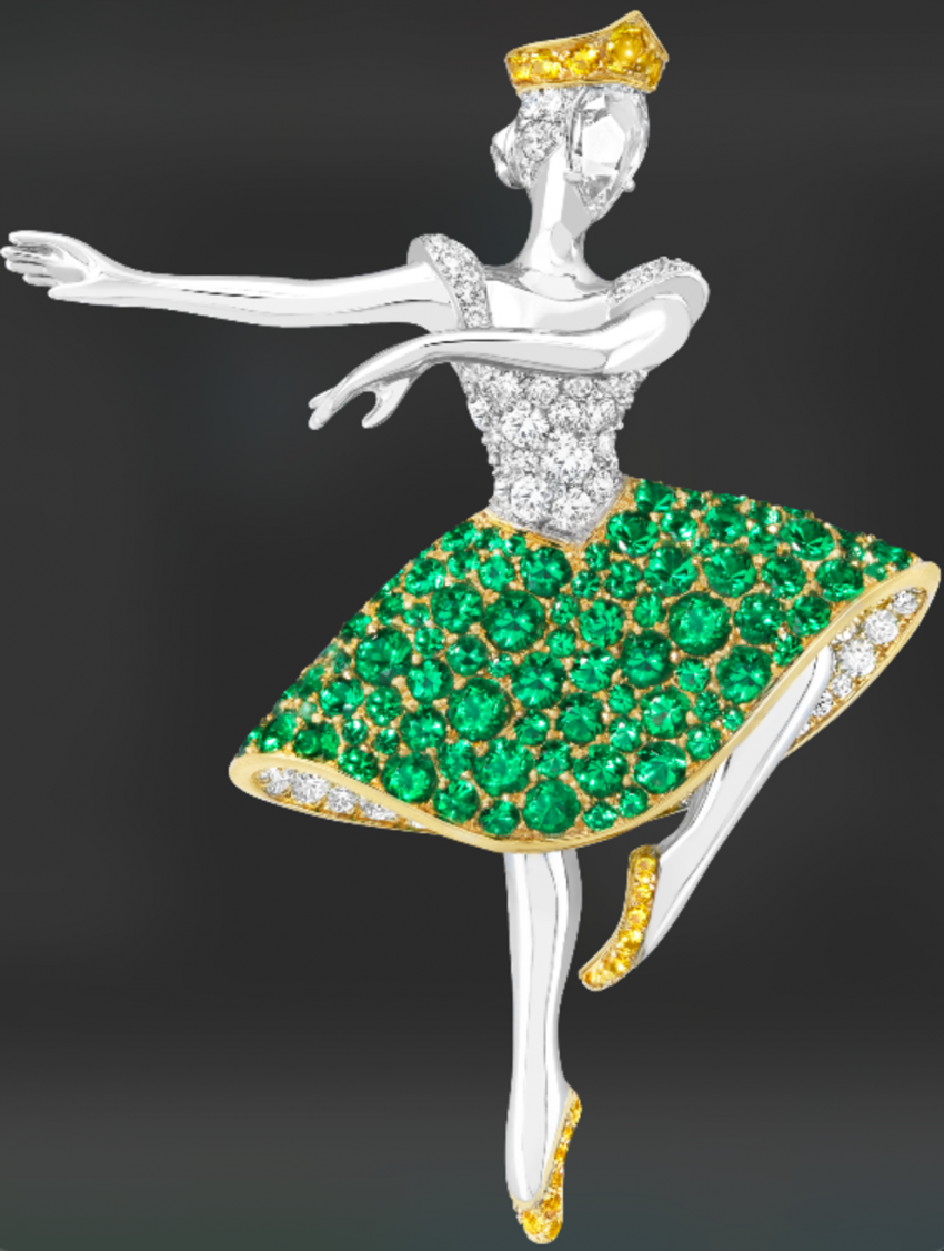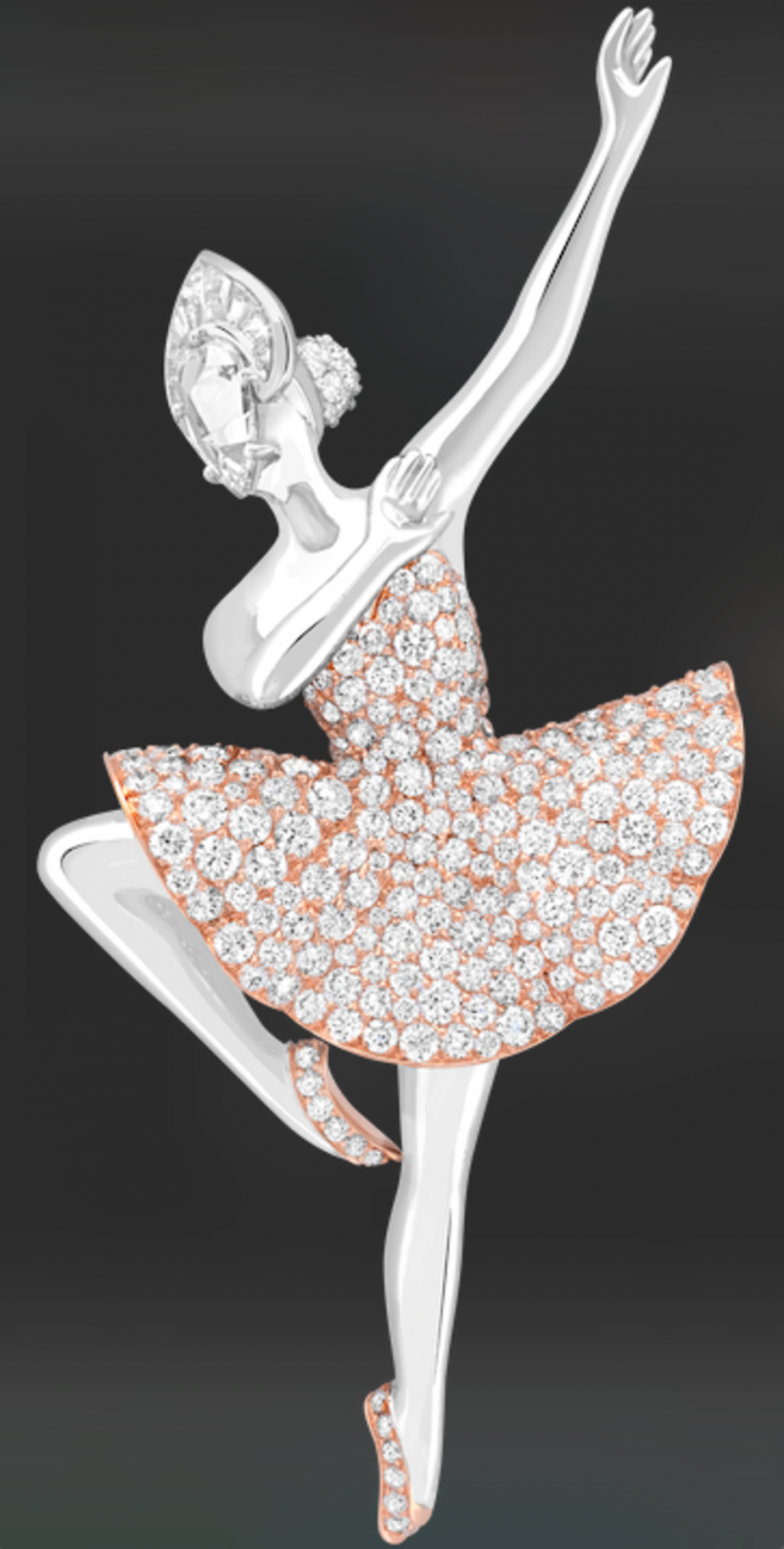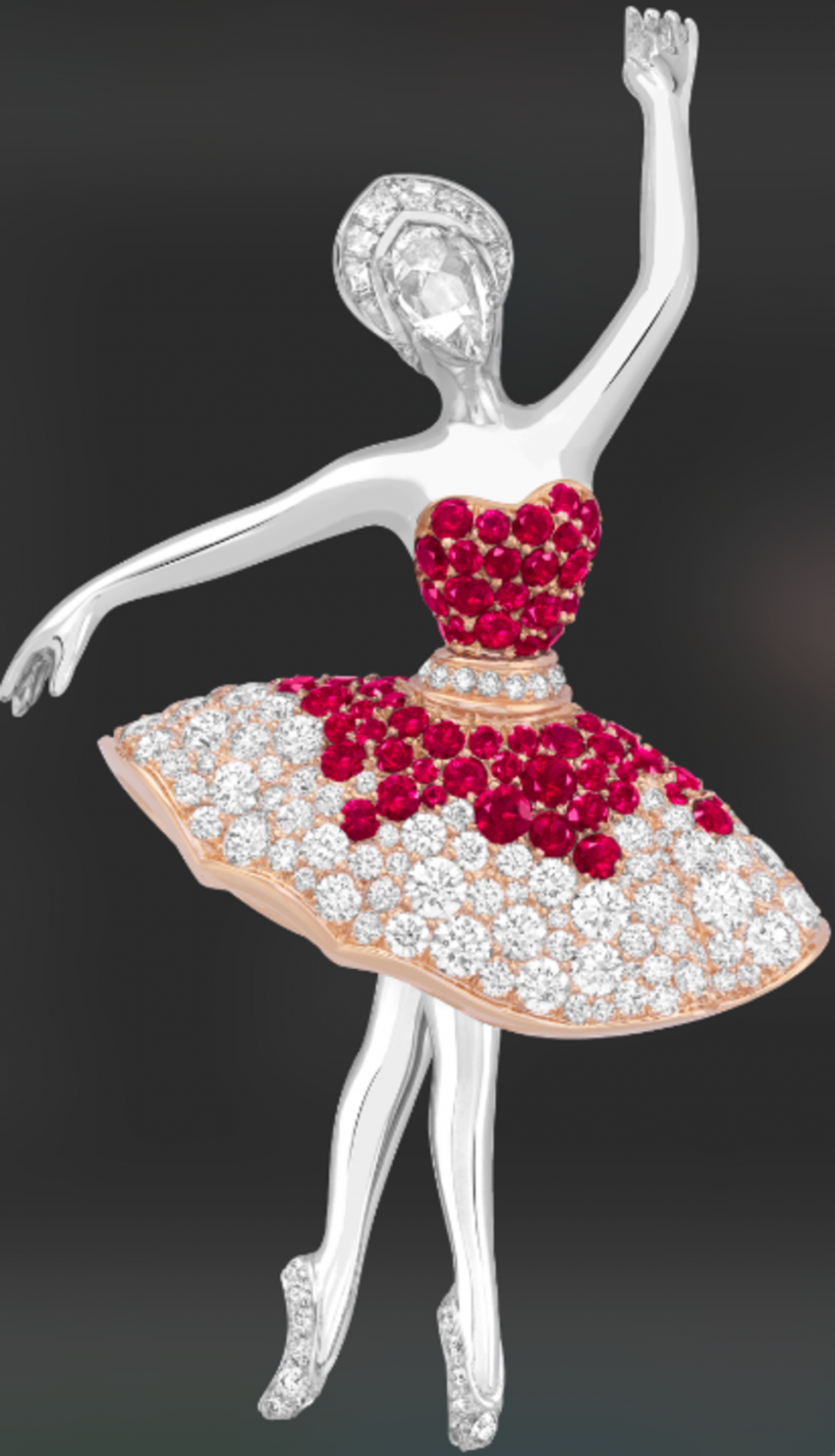 Коллекция пополнилась тремя новыми брошами: Camille ballerina, выполненная из желтого и белого золота и украшенная облаком изумрудов в огранке из бриллиантов, Dulcinea ballerina, изготовленная из белого и розового золота и бриллиантов, и Albertine ballerina, отличающаяся особым сочетанием белого и розового золота, бриллиантов и рубинов.