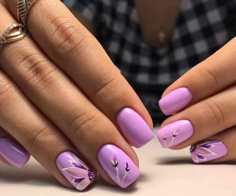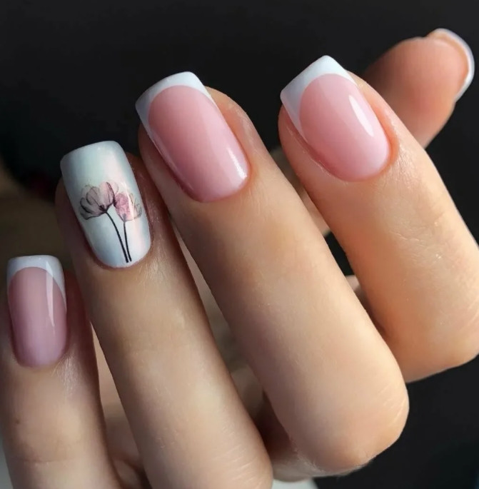 - Цветочные мотивы. В этом сезоне они тоже остаются актуальными. Но желательно делать их более простыми, не перегружая ноготь большим количеством цветочков.