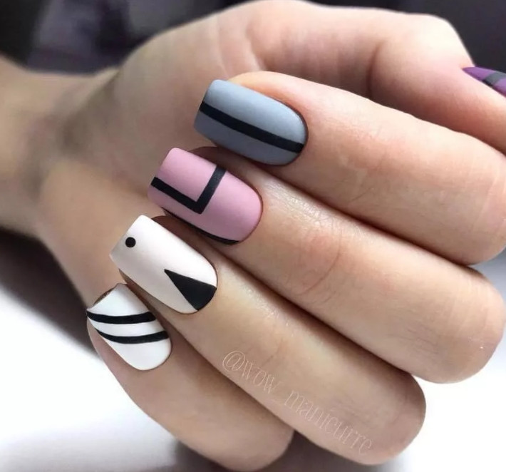 Что касается геометрии, то и здесь требуется умеренность – делайте геометрический узор либо максимально простым, либо реализуйте более сложные мотивы на одном или двух ноготках.