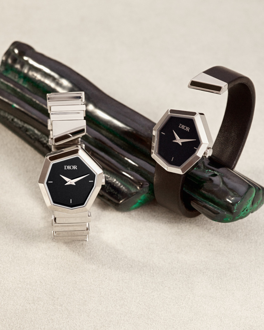 Часы Gem Dior, сталь, перламутр, кварцевый механизм, часы Gem Dior, сталь, перламутр, кожаный ремешок, кварцевый механизм, все – Dior JoaillerieНо у Gem есть еще один прообраз – Виктуар де Кастелан рассказывает о расклеенных в линию кусочках ткани, которые Кристиан Диор использовал в мастерских, проверяя цветовую гамму коллекции. Разноцветные полоски и вправду напоминают развернутый браслет. «Так что эта коллекция соединяет идею природы с идеей кутюра».