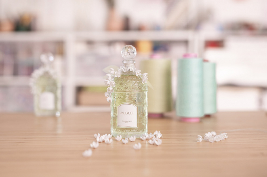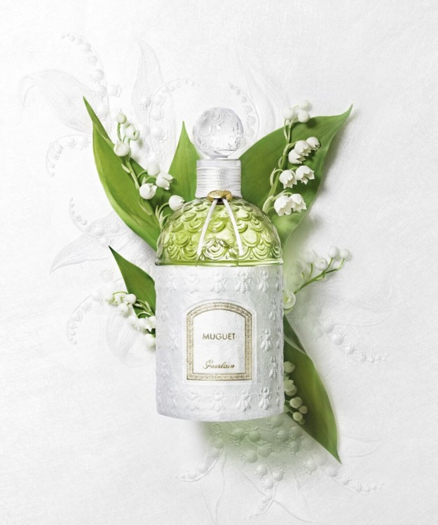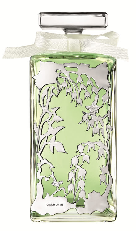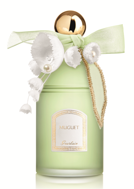 Каждый год 1 мая у Guerlain выходит Muguet, аромат ландыша в эксклюзивном флаконе. В 2021 году, посвященный ландышам, в лимитированном флаконе. В этом году его оформляет молодая парижская дизайнер изделий из текстиля и бумаги Люси Туре