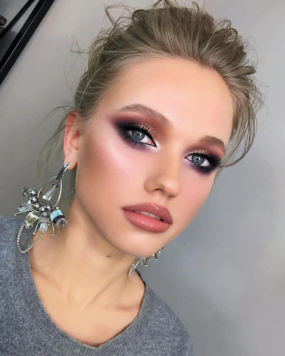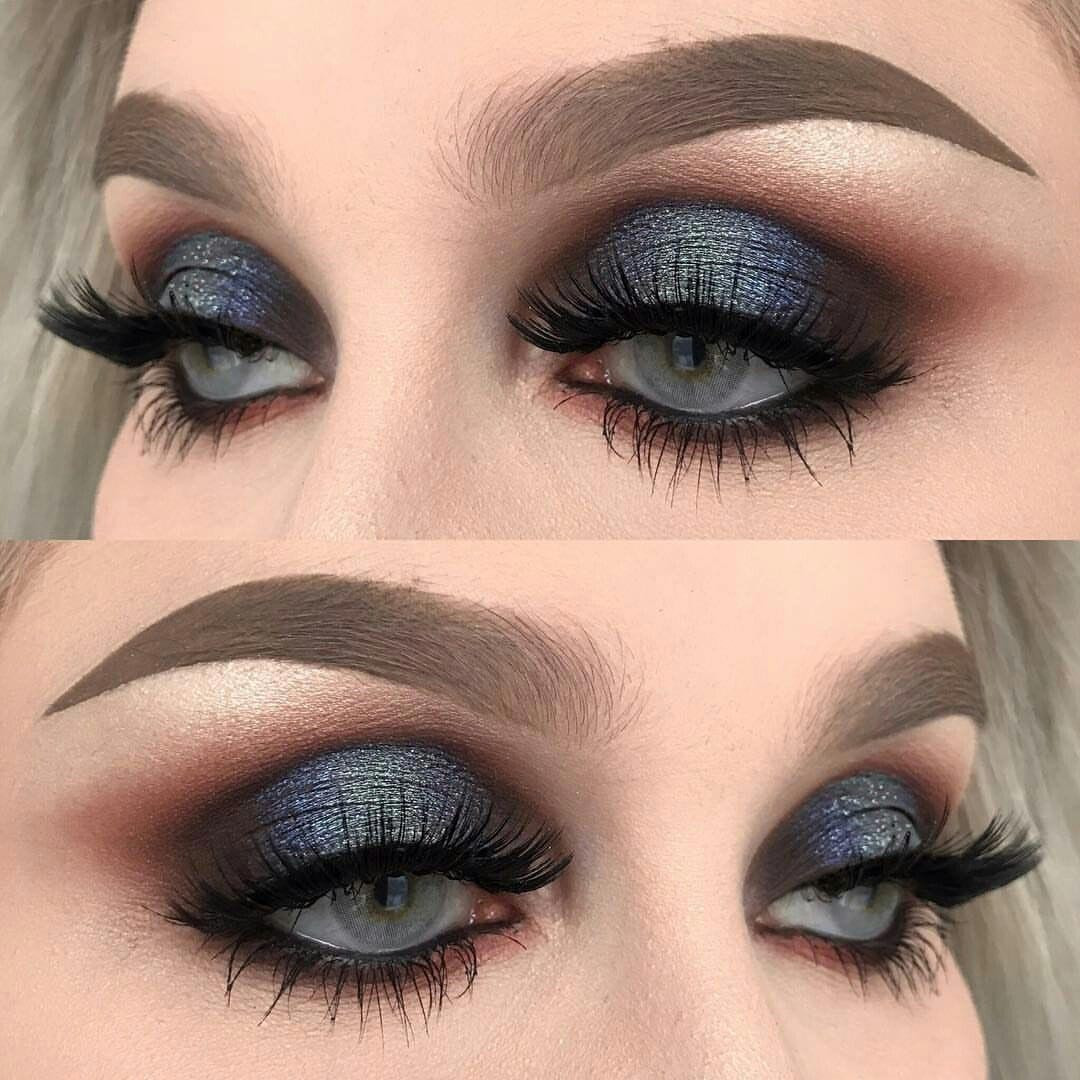 Для красивых голубых глаз больше подходят насыщенные и глубокие тона: разные оттенки коричневого, серого и сиреневого. Также можно использовать классический черный цвет. Вечерний макияж дополнят аккуратные стрелки. Главное – не переусердствовать, чтобы создаваемый образ не получился слишком вычурным и перегруженным.