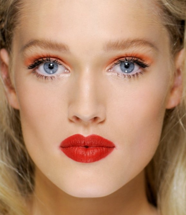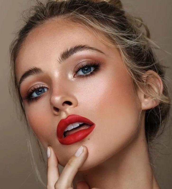 Классика будет популярной всегда, и это можно отметить в коллекциях многих известных кутюрье. Помады насыщенного красного оттенка с плотной текстурой не только украсят губы модниц во время празднования Нового года 2022, но и будут хорошо дополнять макияж для голубых глаз. При этом глаза можно сделать выразительными или использовать небольшое количество туши и нанести лишь тонкие стрелки на веки.