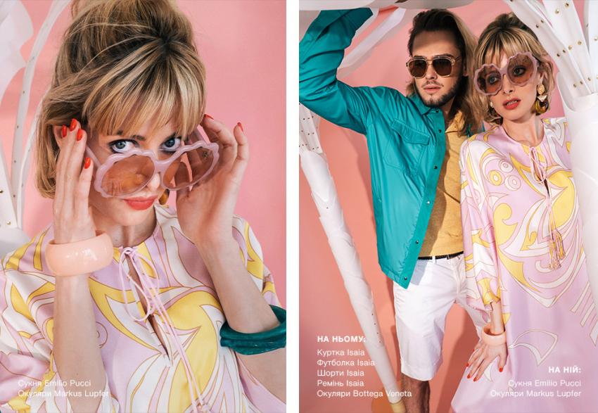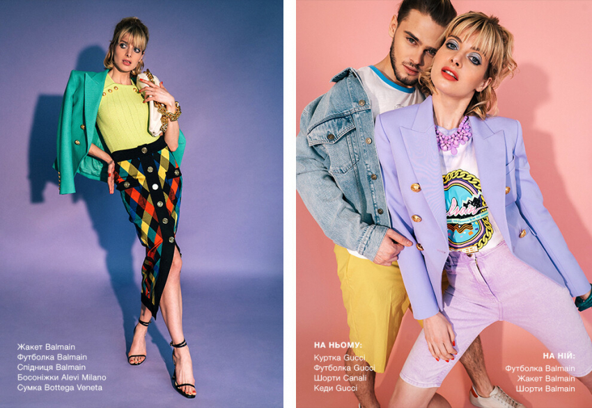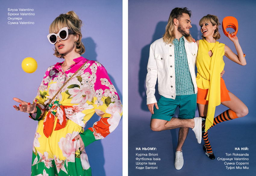 Настроение свингующих шестидесятых можно уловить в белом платье А-силуэта Valentino, в образах, созданых по технике color blocking, сочетающих желтую блузу Roksanda и оранжевую юбку Valentino, в игривом мини Balmain, которое оценила бы сама Мэри Куант, игривых туфлях Miu Miu или футуристичной сумке Coperni. Каждая вещь в веснне-летнем кампейне Symbol излучает энергию цвета.