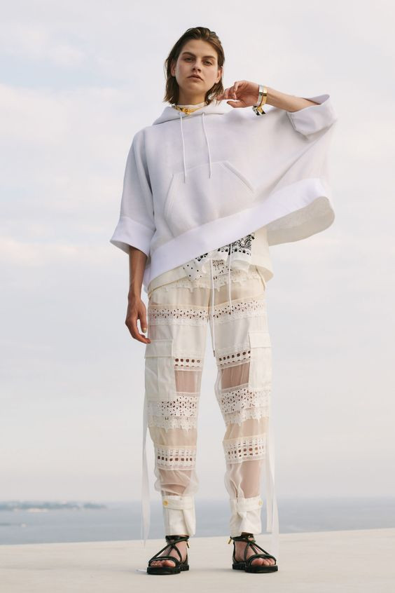 В этом контексте дизайнеры одежды проявили все свои творческие способности. Если ранее, как уже упоминалось, толстовку включали в спортивный, повседневный лук, то сейчас на подиумах мы видим свободные кофты навыпуск, представленные в самых нетривиальных вариантах комплектации.