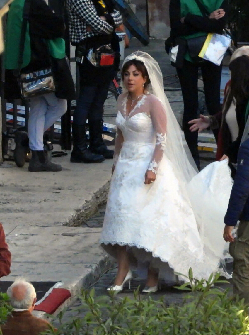 Леди Гага в свадебном платье на съемках фильма "Дом Гуччи" - «Уличный стиль»