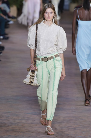 Ну а теперь поговорим о трендах сезона. Предложу вам пару нескучных джинсовых образов, подсмотренных на весенних подиумах.