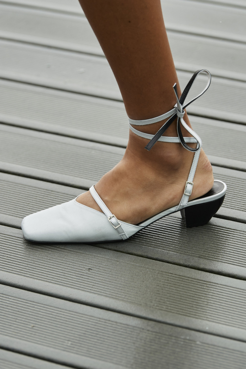 Ports 1961Мотивы 1990- х годов не покидают головы дизайнеров. Вслед за спортивными брюками, топами на токих бретельках, сумками-багетами и бейсболками, бренды воспели туфли с квадратным мысом. Drome признались в любви белоснежной паре, которая идеально впишется в летний деловой гардероб, Coperni показали туфли с открытой пяткой и всевозможными ремешками вокруг щиколоток, а Salvatore Ferragamo представили фигурные туфли, для девушек, которые любят эксперименты со стилем.