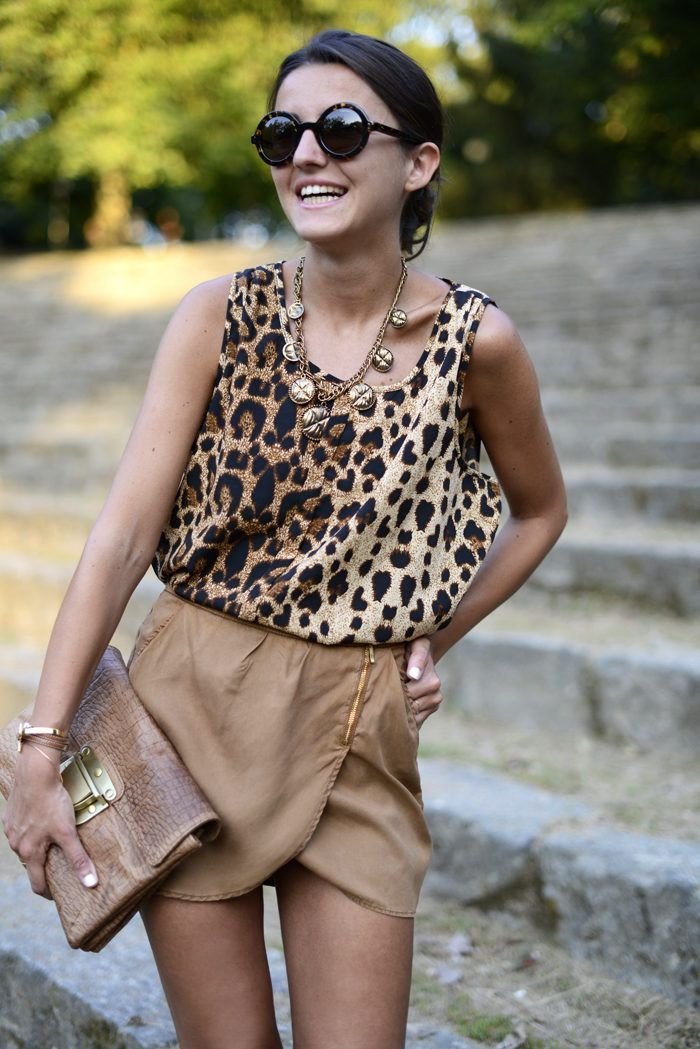 Также не стоит забывать и о животных принтах. Леопардовые и тигровые блузы отлично сочетаются с прямыми или зауженными джинсами и брюками. Если позволяет дресс-код, то такой наряд можно надеть в офис, дополнив его туфлями на шпильке и объемной темной сумкой.