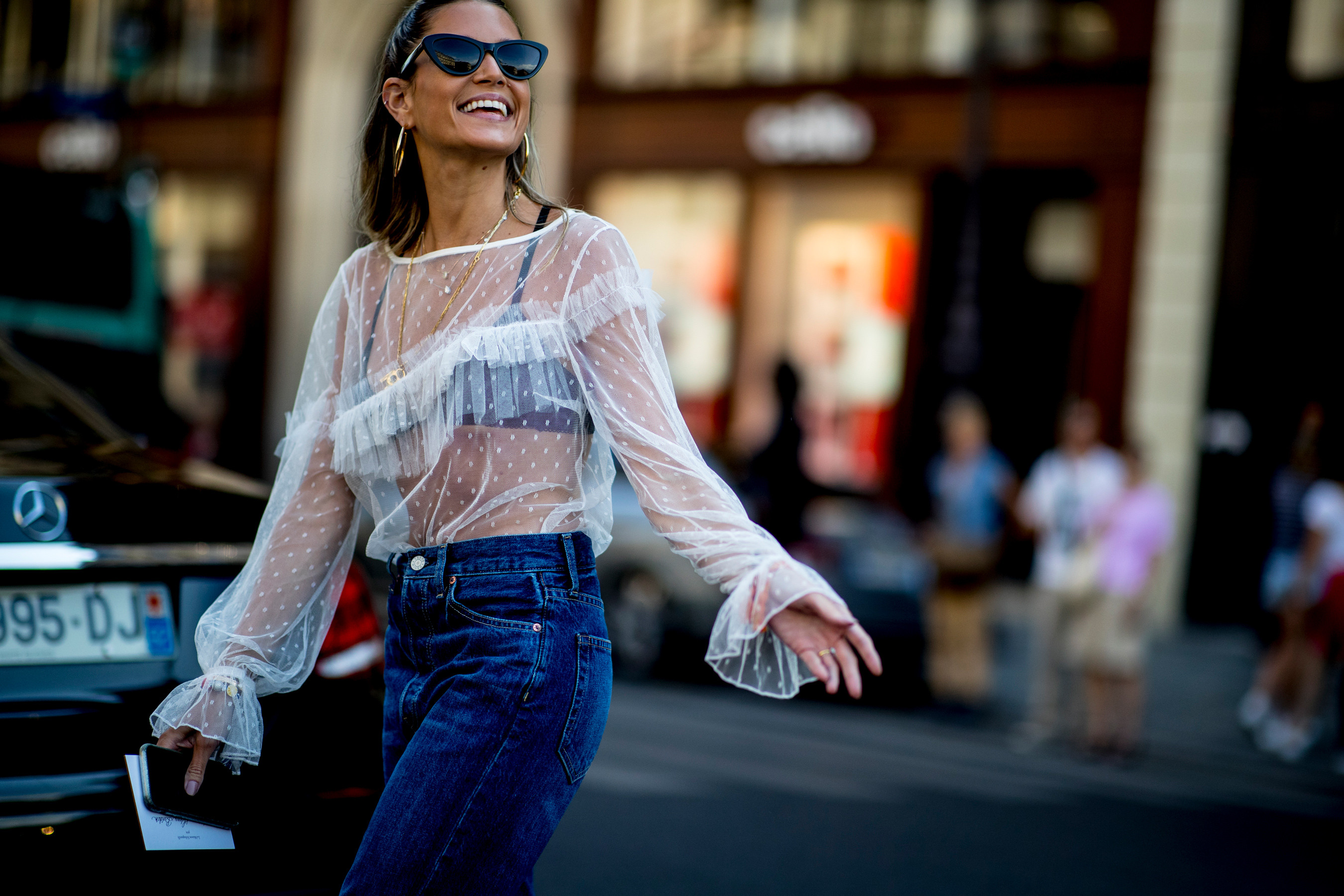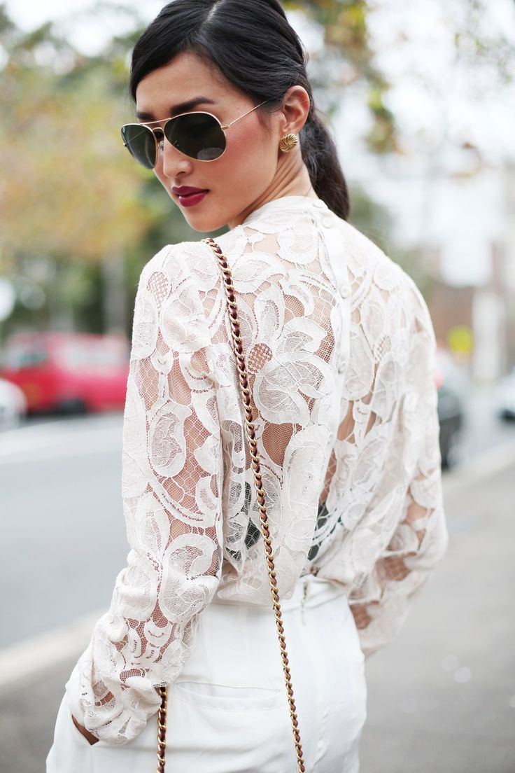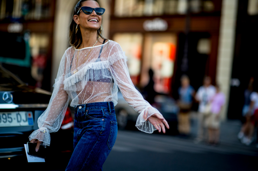 Предмет гардероба может быть полностью прозрачным или только с какими-либо деталями. Под такую блузку стилисты советуют надевать обтягивающую майку на тонких бретелях, удлиненный топ или кружевной бюстгальтер.