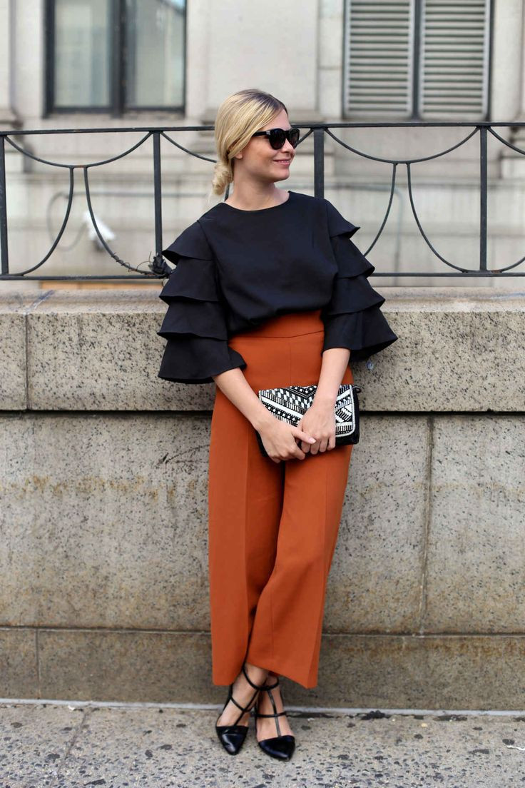 Блузы с коротким рукавом или с завязками на груди лучше оставить для отдыха. Их дизайнеры не советуют носить в городе даже летом. Правильно подобранный низ поможет разгрузить образ и придать ему элегантности.