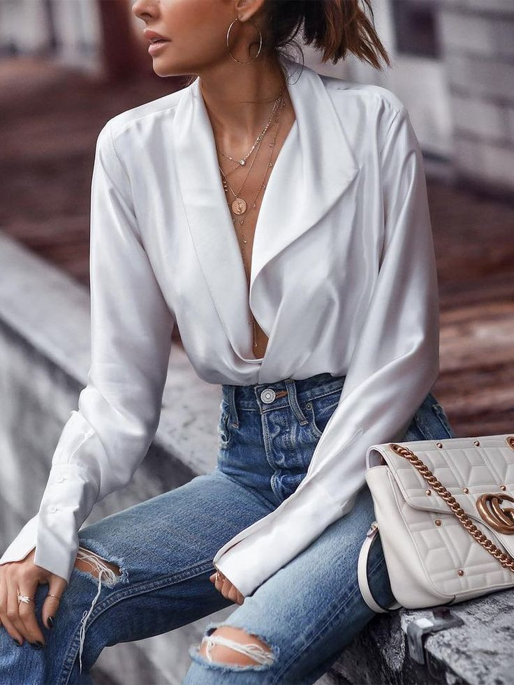 Последним трендом стали блузки из натурального шелка. Однако некоторые модные дома решили дополнить свои коллекции изделиями из атласа. Любой из этих материалов смотрится выигрышно, если подобрать блузку правильного фасона и дополнить образ эффектным низом.