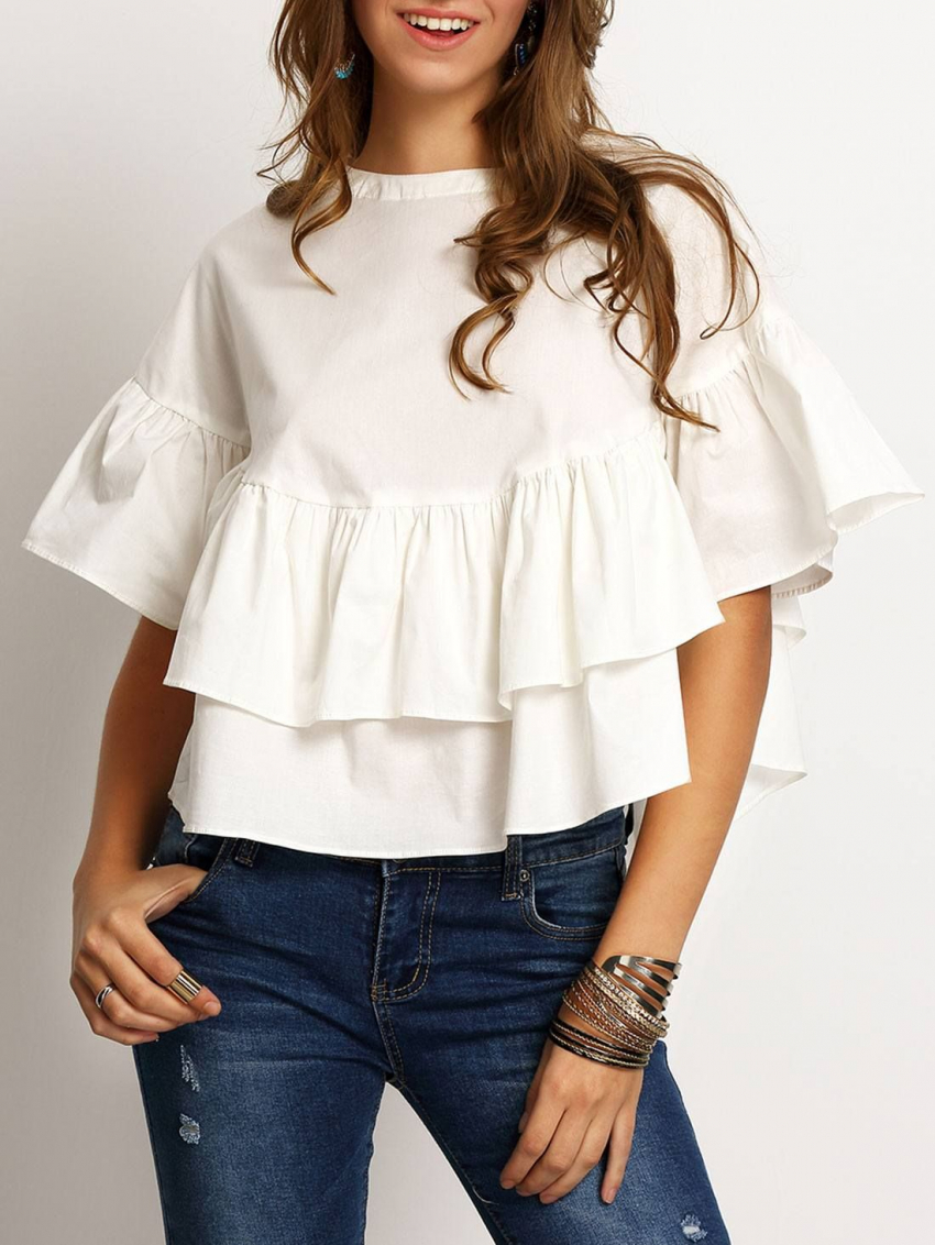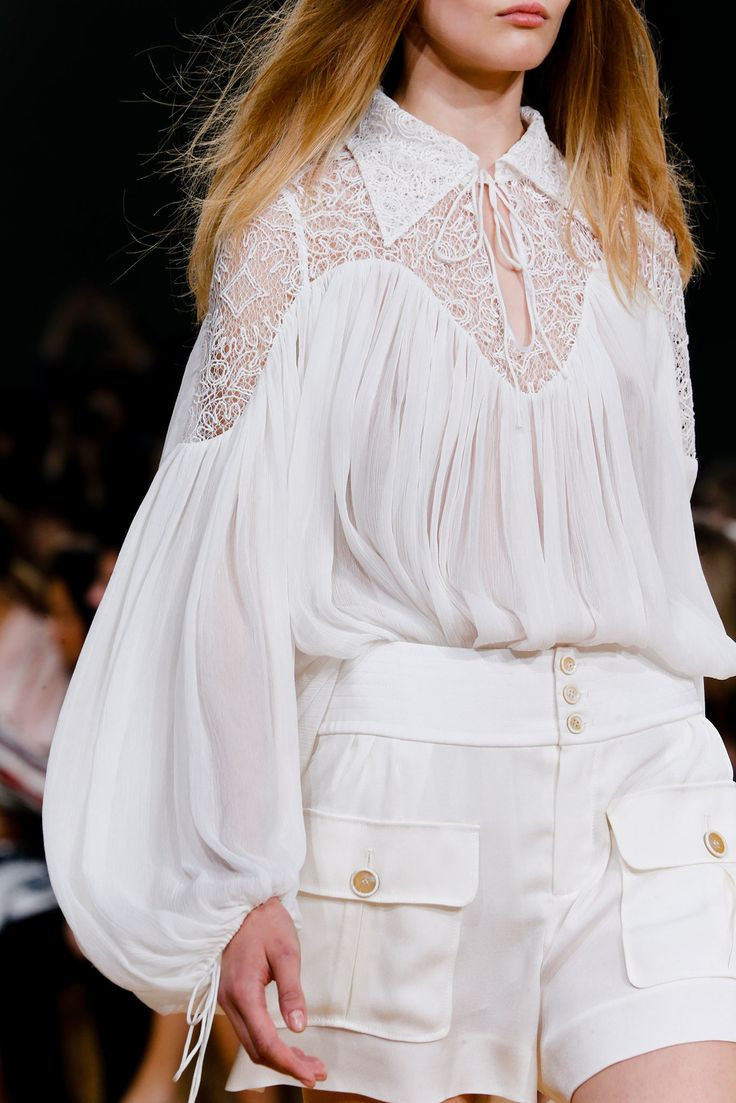 Обычно такие детали изготавливаются из шифона или сетки. Блузки с рюшами смотрятсят эффектно и придают образу более женственный вид. Оборки и рюши могут быть на рукавах, плечах, вдоль талии, на шее и груди.