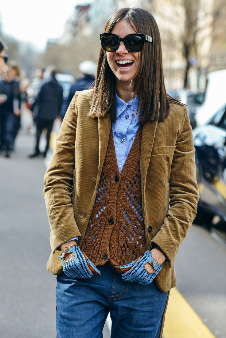Вельветовая вещь лучше всего смотрится в многослойном образе, такой лук идеально подходит для кэжуал стиля.
