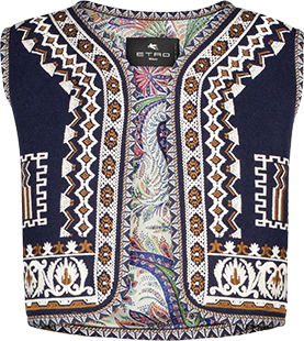 Платье Zimmermann, жилет Etro, обувь Roger Vivier, украшения Gucci и Sydney Evan