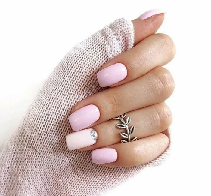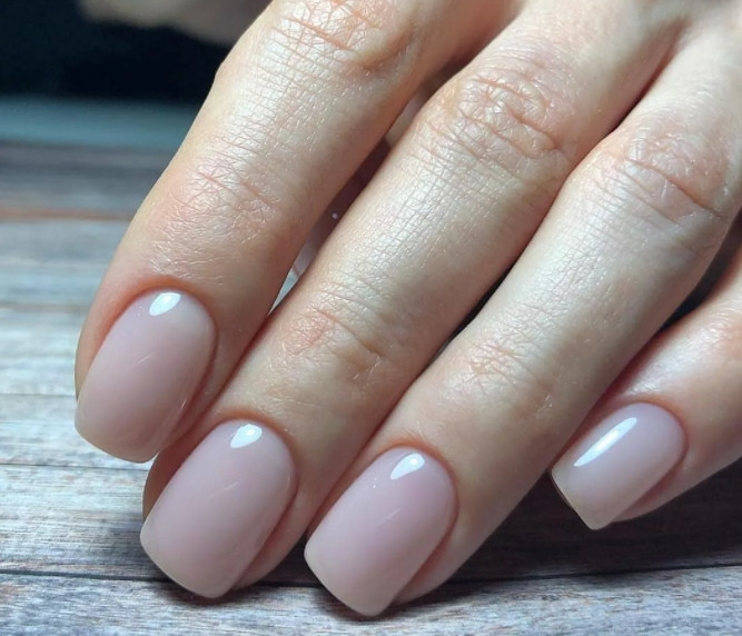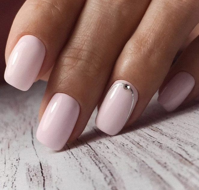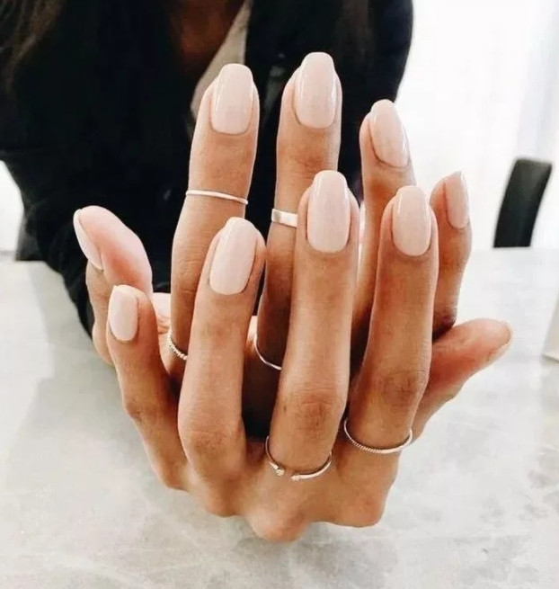 Розовый маникюр также доступен в пудровом исполнении. Благодаря этому он будет чуть более женственной альтернативой классическому бежевому, подходящему для работы.