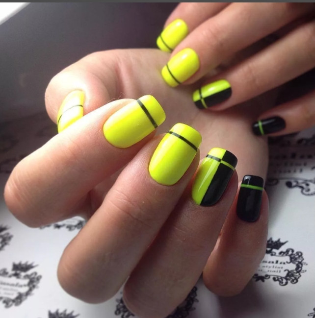 Интенсивные цвета могут переходить в приглушенные или дополнять их. Модны различные варианты — от выразительного розового и зеленого до привлекательного желтого или оранжевого. Можно покрыть все ногти одним цветом или комбинировать неоновые оттенки с другими цветами.