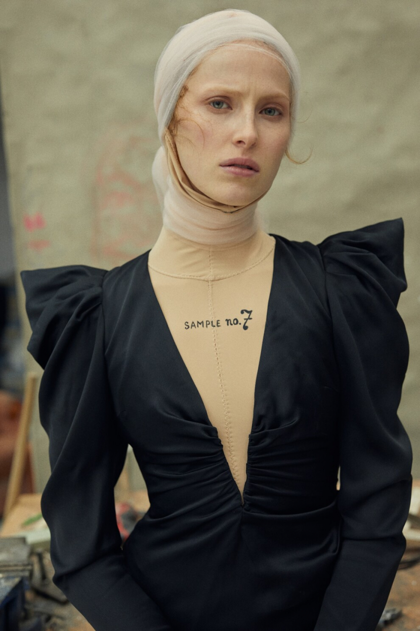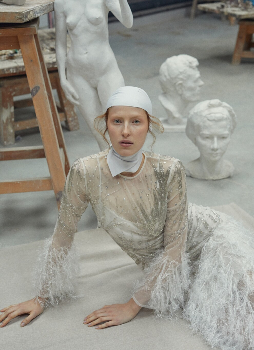 Окруженные красотой скульптурной студии, мы начали собирать каждый образ по частям, чтобы показать начало творческого процесса. Модель - манекен - была нашей скульптурой, а также источником вдохновения. Большая часть одежды, которая надета на модели, была сшита непосредственно перед или во время съемки. Мы сшили и переделали некоторые предметы одежды - например, винтажные платья Chloé и Gucci или старые брюки Isabel Marant, - чтобы они могли оставить пространство для воображения и творчества. А, возможно, стать началом чему-то еще".