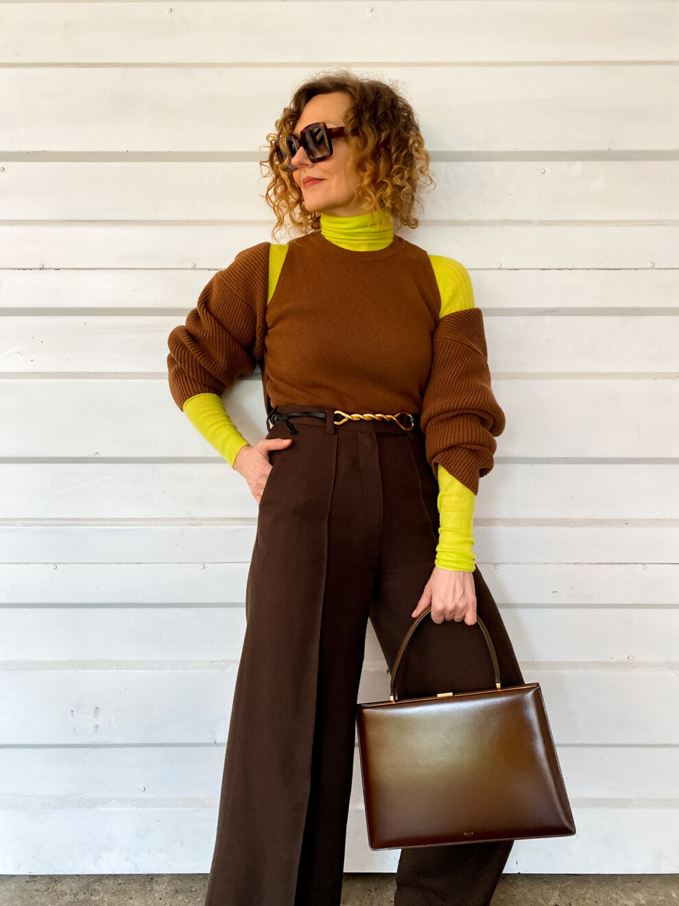 Стритстайл на Неделе моды в КопенгагенеЦветная кожа – еще один прошлогодний тренд, который не теряет своей актуальности и в 2021 году. Например, брюки из цветной кожи можно сделать как частью яркого многослойного образа, так и на их основе выстроить лаконичный ансамбль.