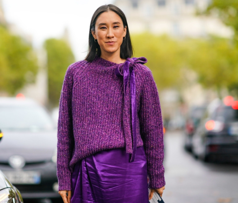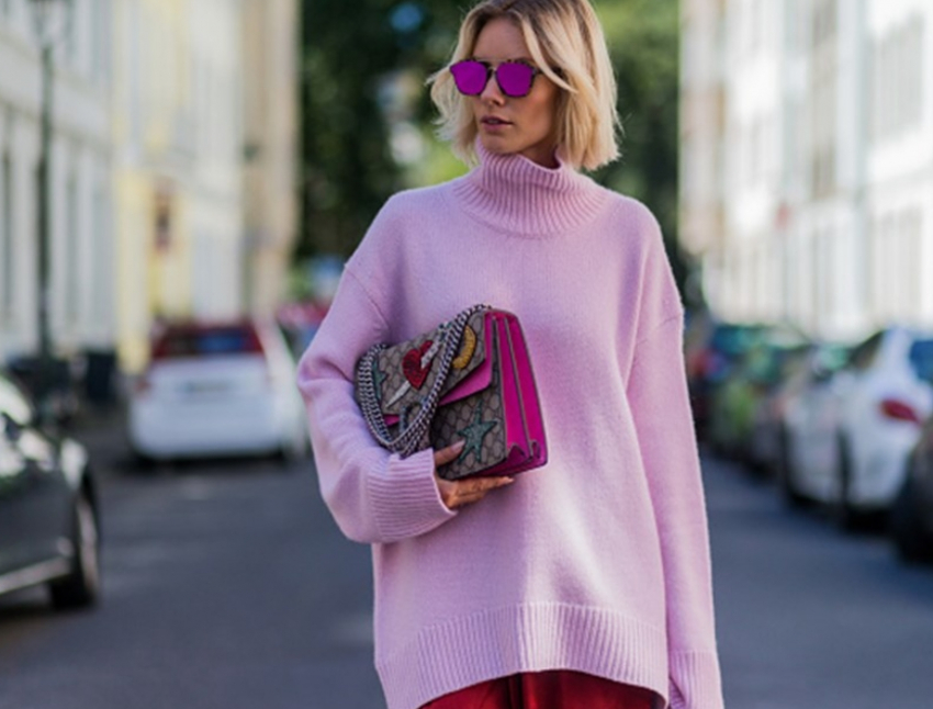 Осенью и зимой шерстяные свитера пастельных оттенков лаванды составят большую конкуренцию черному и другим востребованным оттенкам. С помощью такого свитера получится создать выразительный гардероб в сочных оттенках.