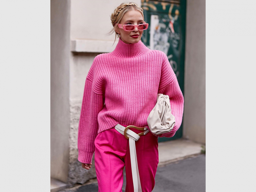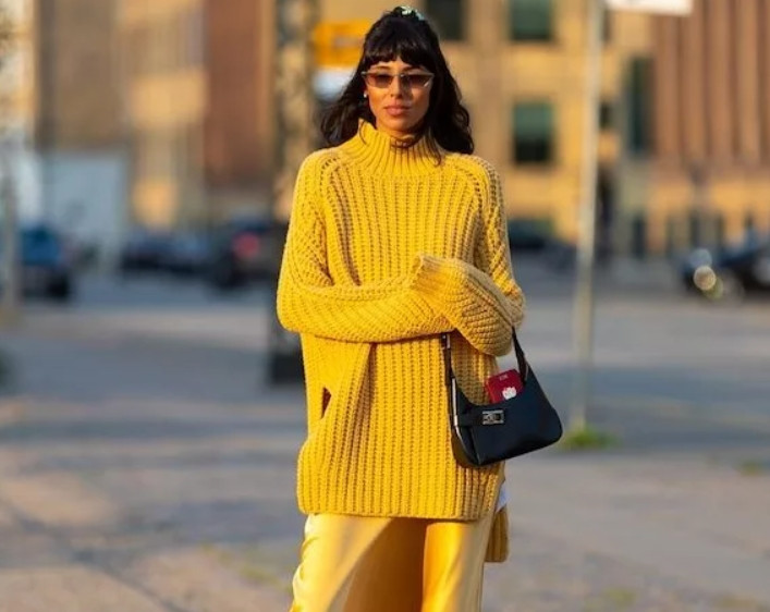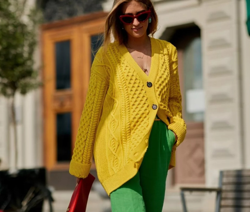 Модные свитера на осень-зиму 2021-2022 гг. таких цветов — прекрасная основа для любого модного образа, причем как для работы, так и для обеда с друзьями. Альтернативой свитерам приглушенных цветов станут модели ярких оттенков: