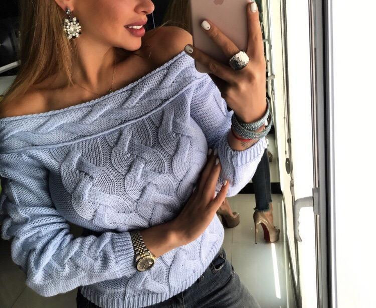 Асимметричный вырез, небрежно открывающий плечо, — способ выглядеть одновременно элегантно и соблазнительно. Такой свитер можно надеть по любому поводу: на прогулку, встречу с друзьями, на работу или на романтическое свидание.