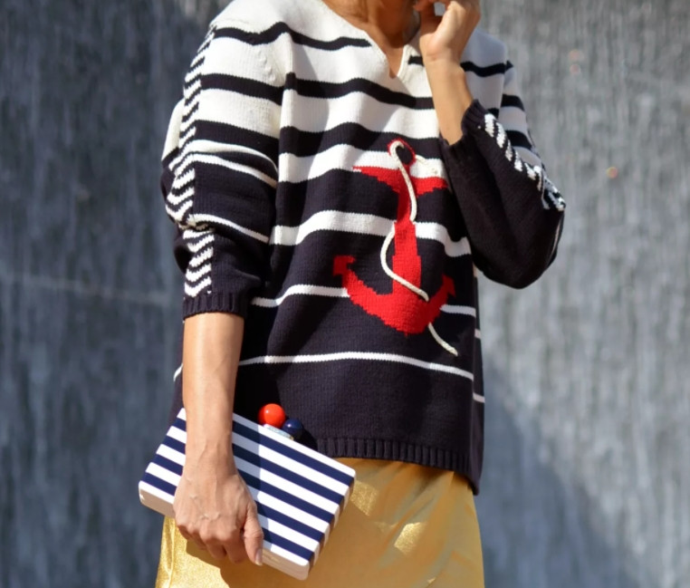 Полоски, золотые пуговицы, подходящие цвета на основе темно-синего, красного и белого, узоры с якорями и воротники, как у матросов, — все эти элементы могут украшать свитера, которые стоит носить этой осенью и зимой. Моду на морские акценты продвигают Gucci, Burberry и Miu Miu. Подобный свитер — довольно сильный элемент образа, поэтому дополнить его стоит классикой, например, брюками чинос темного цвета, мокасинами или бежевым тренчкотом.