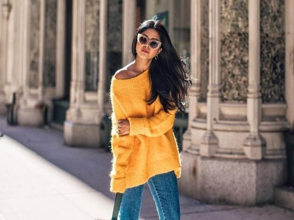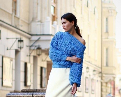 Сочетать такие свитера нужно с юбкой-миди со складками, джинсами зауженного кроя или атласным платьем-комбинацией и ботинками. Кроме того, в моде будут элегантные свитера с открытыми плечами и вырезом.