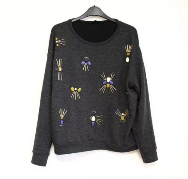 - Свитер может быть как длинным, так и коротким. Приветствуется украшение бахромой и различные рисунки.