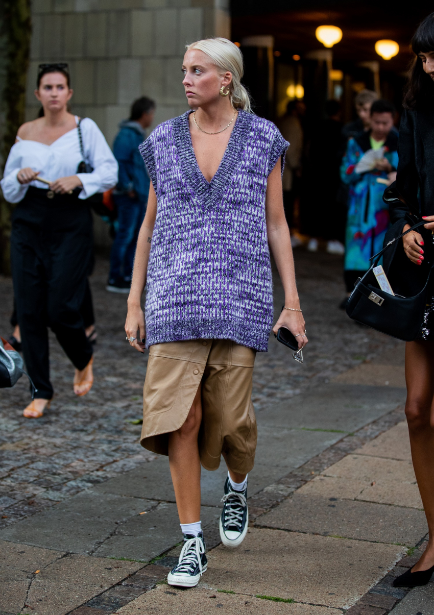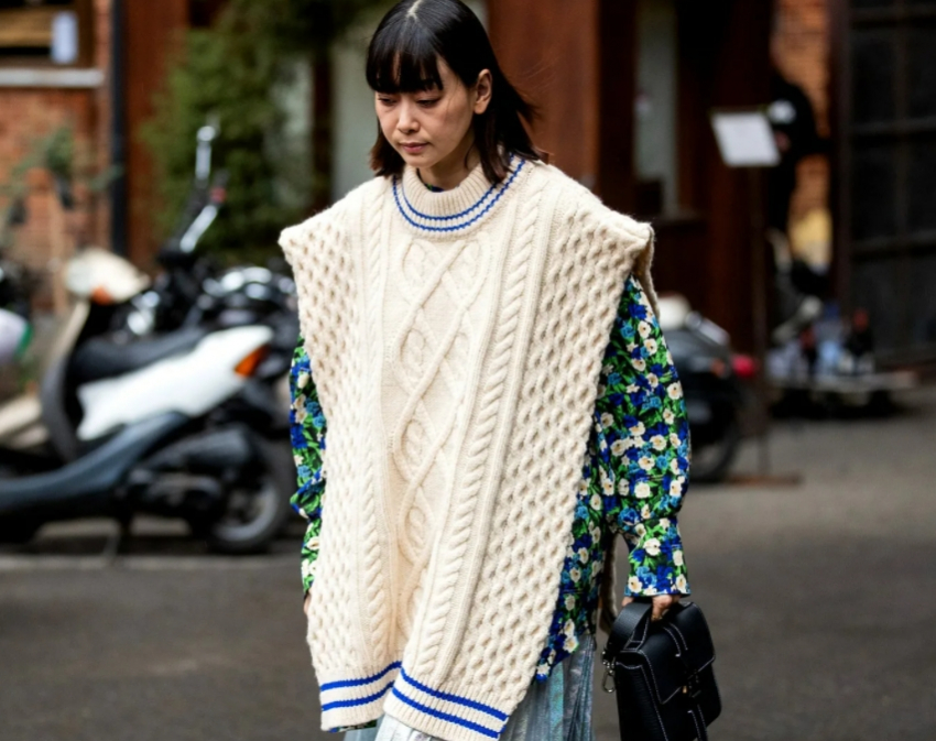 Модные свитера на осень-зиму 2021-2022 гг. такого типа продвигают Dior и Lacoste. Они рекомендуют яркие цвета с привлекательным принтом, например, в пастельную клетку. Надевать их нужно поверх белой рубашки в сочетании с плиссированной юбкой-миди и кроссовками, так получится образ прямо с подиума Prada. Также их можно сочетать с мини-юбками трапециевидного кроя, гольфами до бедра и сапогами.